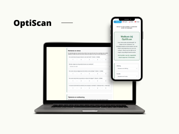 Met onze OptiScan brengen we in kaart wat medewerkers energie geeft en wat hen tegenhoudt. Deze scan biedt inzicht in de balans tussen Energieslurpers en Energiebronnen. De resultaten worden weergegeven en uw bedrijf krijgt een OptiScore. Dit vormt de basis voor optimalisatie.